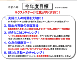 「今年度目標」のトータル・コンセプトは 「ネクストステージは気が向くままに!」に設定しました。 大項目5項目のテーマのうち3項目を従来から大きく変えました。そして一つ一つがより具体的にイメージできるものに仕上がった感じです。 夫婦二人の時間を大切にし、新生共育塾の側面支援、 “心身の健康第一!”と“新たな活動へのチャレンジ”など、ネクストステージにスタートする年にしたいと思います。 本年も、どうぞよろしくお願い致します。 |