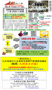 難病手術し半年後に退院した頃に、非常にお世話になっている経産局・松田課長(現基山町長)から「“九州志士の会”を立ち上げるので、熊本代表で参加してほしい」旨の電話があり、発起人の一人になりました。2012年に社団法人化して、理事としても活動開始しました。 https://shishi-no-kai.jp 2013年に熊本支部を1番目に立ち上げ、熊本での独自活動を始めましたが、本部組織整備が不十分なため、なかなか思うように機能せずに私は2年間で本部理事と熊本支部長を降りて、ナスドリームズ奈須さん(共育塾塾頭)に、その後にクリエイトビジョン上村君にバトンタッチしています。現在、上村支部長は積極的に活動して本部の再生を含めて頑張っているところです。 |