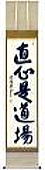 【直心是道場】 「直心是道場」は「素直な心をもって精進修業すれば、天地至るところが道場であり、修業の場所ならざるはない。」という唯摩居士の教えである。 ある時、修行者が都会の喧騒の中では修行ができないと考え、修行に適した静寂の地を求めて町の城門を出ようとしたところ、城門内に入ろうとする維摩居士に出会った。「どちらからいらっしゃいましたか」修行者が尋ねると「道場から来たよ」と維摩居士は答えた。道場から≠ニ聞いて、修行者は弾んで「道場はどこにあるのですか」と尋ねた。 その時、維摩居士は「素直な気持ちがあれば、どんな所も道場、修行の場だよ」と答えた。 これが「直心是道場」という意味である。 |