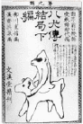 かの有名な滝沢馬琴が書いた「南総里見八犬伝」(1814年初刊され1842年に完結)の9巻目(第九輯巻五十)の挿絵に木の葉猿が書かれているようで、その拡大版が展示されていたこと。犬に乗った猿の絵で、解説に「肥後国玉名郡内田の土産」と書かれている。この交通が不便な時代に、江戸にも肥後の土産物として木の葉猿が届いており、当時の有名な本に掲載されていることは凄いことである。 また1916年(大正5年)の「全国土俗玩具番付」の大きなパネルも見せてもらったが、そこには東の横綱として木の葉猿が掲載されていた。昔から木の葉猿が、全国的に有名な土産物だったことに、改めて驚かされるとともに感動した次第である。 |