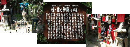四番目は、「性・腰の神様」。 七郎神とも言うそうです。 最も参拝客が多い印象を受けました。 満願成就の時には、男は白色、女は 赤色の布に、住所・氏名・年齢を 書いて、お礼参りするそうです。 赤が多かったかな?? |