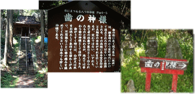 五番目は、「 歯の神様」。 少し分かりにくい場所でしたが、集会所の 前に車を駐車して、細い道を下って行った ところにありました。 歯の形の石が、五輪の塔の左にあり、それ らしい。 その先まで歩いて行くと、結構古そうな神社 があり、そこにも参拝してきました。 |