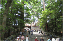 今回のツアーでは絶対的な時間の問題もあり、外宮には寄らずに内宮のみに参拝するだけとなって いた。今回のツアーで、お伊勢参りの状況がよく分かったので、次回、参拝に行く場合は、お伊勢参りに 絞って1泊2日又は2泊3日の日程でゆっくりと参拝するようにしたいと思っている。 案内のガイドが付き、鳥居をくぐり宇治橋を渡って内宮に入った。第一の鳥居をくぐり五十鈴川の御手洗場 で身を清めてから、第2の鳥居をくぐり、神楽殿を横に見ながら歩いていくと、正宮に到着。正宮の石段の ところからは撮影禁止とのことで、肝心な場所は撮影ができなかった。正宮の左隣の場所に新殿が建設 されている最中であったが、20年交互に式年遷宮が行われることの大変さも実感できた。今回初めて 伊勢神宮参拝をしたわけだが、やはり伊勢神宮の格式の高さを強く感じた。 |