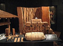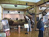 屋内は下の階と上の階に別れており、屋久杉の長生きの秘密や人との係わり、貴重な林業の映像など屋久杉の情報と展示がされており、屋久杉に関しての数千年の歴史すべて分かるようにした総合資料館である。 江戸時代は、これほどの大きな屋久杉を、それも最もいいところだけを活用して、残りは放置していたわけである。その頃は運搬手段が人手しかなかったために、その立派な屋久杉の大木を、長さ50cm、幅10cmほどの短冊形の薄板に加工し、薪のように人夫が背負って港まで下ろしたそうである。それを船で江戸や上方に運んで、屋根を葺く瓦代わりにしていたような話を聞くと、もったいない使い方をしていたと、つくづく思ってしまう。今であれば、立派な床柱として切り出して、ヘリコプターで運搬したであろう。 |