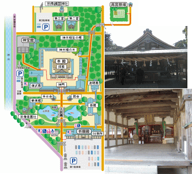 由緒ある宗像大社(福岡県宗像市)に昨年後半、参拝に行く予定だったが、年末まで43年ぶりの「平成の大遷宮」の最中だと分かったために、やむなく参拝を今年に延ばしていた。 そしてつい先日、念願の宗像大社(辺津宮)参拝に行ってきた。新幹線から在来線に乗り換え、快速でJR東郷駅で下車し、バスの時間を確認すると、1時間に1本くらいしかなく、やむを得ずタクシーで宗像大社の入口まで行った。 鳥居をくぐり太鼓橋を通って直進すると本殿に到着。本殿で参拝した後、神木楢の木を経て、第二宮・第三宮を参拝し、少し離れた高宮祭場に向かった。 |