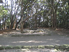 本殿も落ち着いた佇まいでよかったのだが、境内内を散策した中で、特筆したい場所が高宮祭場である。高宮祭場はそこにいるだけで、心が洗われるような気持ちになった。それもそのはず、「宗像三女神降臨の地」として伝わる高宮祭場は、間近で見ることが出来る全国でも数少ない古代祭場の一つだそうである。毎月1日と15日には月次祭(つきなみさい)が斎行され雅楽の演奏、早乙女による舞などが披露されているとのこと。是非、一度見てみてみたいと思っている。 参拝者向けに割符が置いてあったので、家族の健康祈願を書いて、半分を札掛にかけ、半分を持ち帰って神棚に供えている。 本殿の横に骨組みだけの建物があり、札所の巫女さんに聞いたところ、遷宮時の仮本殿だそうで、まだ骨組みだけが残してあるとのことだった。 |