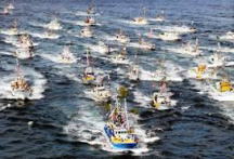 ![]() ![]() ![]() 大漁旗を棚引かせた漁船団 |