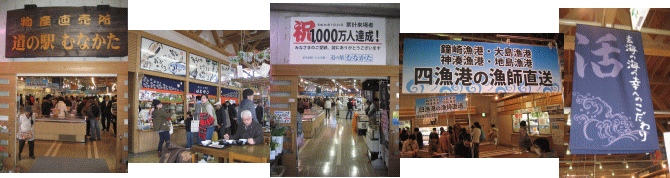 タクシー運転手から、近くに「道の駅むなかた」があり、全国の道の駅でナンバー2の売上実績との話を聞いた。近くまで来ているので、参拝を終えたあとで道の駅まで足を伸ばすことにした。 宗像大社から2.3kmと聞いたので、歩いて行くことにしたが、実際は5kmくらいあり、大社でも相当歩いたあとだったこともあり、着いた時は疲れ果ててしまった。 先ずおふくろ食堂「はまゆう」で、刺し身やカレイの煮付けなど食べたが、新鮮な魚を使ってあるので、非常に美味しかった。店内を回ったのは午後2時近くだったが、まだまだ買い物客でごった返していたのが印象的だった。 1000万人を達成の垂れ幕も貼ってあり、一番の「売り」が、4漁港の漁師がとれたての魚を持ち込むことだと実感しました。聞くところによると、午前9時開店だそうですが、午前8時には買い物客が店の前で長蛇の列をつくっているとのこと。 何となく記憶に残っていたので、調べてみると、ガイアの夜明けで取り上げられていました! 年間売上高17億円、来場者160万人とのことで、売上の4割が魚貝類だそうです。 宗像大社 → http://www.munakata-taisha.or.jp/ 宗像大社方面に行ったら、道の駅むなかたに寄ることをお薦めします。 |