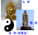 日本精神に多大な影響を与えた思想(哲学・宗教)には、日本古来の神道に加えて、大陸から渡ってきた仏教や儒教、道教の存在がある。いろいろ調べていくと、中国には三大宗教として仏教、儒教、道教(陰陽道を含む)があり、ことごとく日本に伝来し、日本の支配層が、それら外来思想を人民統治の手段として活用・浸透してきた歴史があることを再認識した。 そういうことで先ず、中国の思想史から整理してみることとする。 |