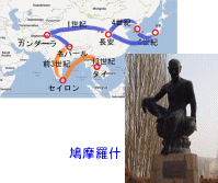 <仏教について> ご承知の通り、紀元前5世紀に釈迦が提唱した原始仏教は、もともとインドが発祥の地であり、その原点にはバラモン教の存在があるが、ここではバラモン教(前10世紀)への深入りはしないこととする。 中国地域への大乗仏教の伝来は、1世紀頃と推定されており、3世紀頃よりサンスクリット仏典の漢訳が開始された。4世紀頃に西方から渡来した鳩摩羅什などの高僧が現われ、旧来の中国仏教を一変させるような転機を起こす。具体的にいうと、不確実な口伝伝承から共有できる経典伝承に切り替わったのが、この時期である。後の唐代の玄奘訳の経典群に比較される程、鳩摩羅什は数多くの漢訳仏典を後世に残した。 5世紀になると、『華厳経』、『法華経』、『涅槃経』などの代表的な大乗仏典が次々と伝来するようになり、曇鸞が浄土教を開いたりしている。東アジア特有の開祖仏教はこの時から始まる。隋・唐時代(6~9世紀)に教団的色彩を持つに至るのは天台宗と禅宗であり、それまでの儒教を中心にした統治政策から、仏教を中心にした統治政策に切り替わったようである。 |