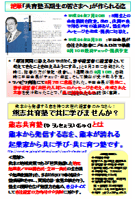 ③熊志共育塾(2期生) もう一つ「次世代へのバトンタッチ」で伝えたいことがある。それは平成24年8月7日に平田会長が急逝されたことに纏わる話である。 この時に平田会長の絶筆「共育塾5期生のみなさんへ」が私に託された。この「次世代経営者への遺言」を熊本の若手経営者にどのように伝えるか、いろいろ悩みながら考えた。最初は共育NWメンバーをオフィスに呼んで当文書を渡し、故平田会長が若手経営者に伝えたかった話をしたが、短時間では当文書の奥にある思いを、なかなか伝えきれない事実に直面した。 そこで無謀ではあったが、「託されたことを次世代に伝える」使命感で「平田耕也氏から学ぶ」塾/熊志共育塾をつくることにした。カリキュラム作成に当たっては多様な調査を行い、試行錯誤を繰り返しながら2年半かけて開発した。今年は2期生(昨年は1期生)が「平田耕也氏から学ぶ」を、1期生は「立石一真氏から学ぶ」を塾生が刺激と気付きを自分ナイズしているところである。 |