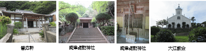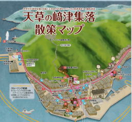 昭和初期、崎津は海産物や隣町の木材・木炭などの交易で栄えた港町で、木賃宿や旅館が立ち並んでいたとのこと。崎津資料館「みなと屋」は昔旅館だったところを回収して資料館にしたとのことで、室内での撮影は禁止されている。説明員から一般解説に加えて、いろいろな質問にも丁寧に教えてもらった。2階建ての資料館内には3つ展示室があり、今回の世界遺産の全体像から崎津集落のことまで、非常に分かりやすくモノや資料が展示されていた。崎津集落は、崎津教会や崎津諏訪神社を含めた限定された狭い地域になっているが、これは世界遺産の条件を満たすためではないかと思った次第である。 |
