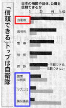 倫理観の希薄化社会(自己中心主義の蔓延) 最近の日経新聞記事に、「日本の機関や団体、公職を信頼できるか」が掲載されており、信頼できるトップが自衛隊、ワースト3が①国会議員、②マスコミ、③国家公務員とのこと。 災害が増加する中で、自衛隊の活躍に感謝する国民が増えていることが信頼感を高めている。「自衛隊は違憲である」などと声高に叫んでいた野党が主流の時代がついこの間だったので、時代の変化を強く感じる。 一方では連日、TVニュースや新聞を騒がせている国会議員や国家公務員に対する不信感は非常に高まっており、またマスコミへの不信感も相当大きくなっている。 オレオレ詐欺で高齢者を食い物にする詐欺集団、スポーツ界のパワハラ問題、いじめ自殺などで責任逃れをする学校関係者、ほかにも子供の学校教育の中で「知らないおじさんから声をかけられたら逃げなさい」などと教育しなければならない社会が確実に広がっている。 高い倫理観を有し、まさに世界一の信頼社会だった日本で、いつの間にか不信社会がジワジワと進行している実態に驚かされるとともに、忸怩たる思いを強く感じている。 |