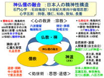 今年度目標の一つに、「日本精神と未来社会に関する調査研究を楽しむ」を掲げているが、この中の「日本精神の深掘り(神仏儒の融合)」については、今後も調査研究を進めていくつもりである。それぞれのタイミングで集中して調査・研究してきたつもりであるが、残念ながら歳をとる毎に忘れることも多くなってきて、悔しい思いをしている。しかし、潜在意識の中には多くのモノが残っていると自分自身を納得させている。最初に神道、仏教、儒教について、復習の意味も込めてそれぞれを紹介しておく。 | ![]() |