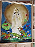 中でも海外でソウル・ペインター(魂を描く人)と称される中田恭子画伯と、神事の前と直会の時に、ゆっくり話をする機会があった。中田画伯は、この10年は国際平和美術展など海外で毎年、複数の展示会に出展して、高い評価を得ているようである。タレントの荻野目慶子から胡蝶蘭が届き、アパホテルの元谷芙美子社長からは長い祝電が入っていたが、両方とも中田画伯とのご縁のようである。 中田画伯から、不可思議な縁があって当神社に3枚の天井画を奉納することになった話も聞いたので紹介したい。 長崎の波佐見神社に天井画を奉納する際に、奉納予定の緑色の可愛い河童を描いて、河童研究家(肥前渋江家、肥後渋江家も調査研究の対象)である神奈川大・小馬教授に見てもらったところ、河童の絵に対してダメ出しを食らったとのこと。 そして「橘家由来の河童伝説」の詳細を教えてくれ、「橘家由来の河童は赤色であること」「波佐見神社は女神、天地元水神社は男神で、両神社の交流が更なる幸せを生む」などを知ったことで、今までの構想を全面見直しして、波佐見神社には男神の天井画を、天地元水神社には女神を描くことにしたそうである。また天井画の一つに、女神と共に竜神と赤い河童も描き込んだとのこと。 直会で話を聞く前は、気付かなかったので、帰りに神社を訪問してよく見たら、数匹の赤い河童が描き込まれていたのに改めて感動! |