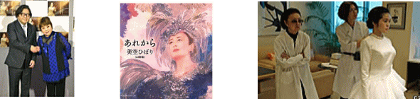 語りについてレコードには「悲しい酒」のみで語りが入っており、これをベースに作ったものは「励ましの歌」には使えない「悲しい語り」になってしまい行き詰った。息子の加藤哲也に相談すると、ひばりが公演で留守する時に息子が寂しがらないように録音した「励ましの声」が残されており、その音源を活用することで、この悩ましい課題も解決できた。 | ![]() |