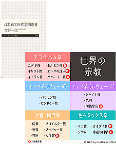 この哲学の入門書の中で、もっと役に立ったのは、第1部「哲学ってなんだ?」の部分である。この中では、「哲学と宗教と科学」の関係について述べられており、非常に頭の整理に役立った気がする。 ①はじめに宗教ありき :農業社会が始まり人間が集団化していく中で、人間の間でさまざまな争いごとが発生していたが、人々は秩序ある集団化を望み、その実現のために人間の智慧で、宗教を生み出したと考えられる。アニミズムから始まった宗教は、原始時代の人類が、自然を合理的に理解するためにつくり出したものであり、神話や儀式を共有することで、集団を強固に結び付けたりしてきた。そして全ての不思議な出来事は「神がつくった」「神が決めた」「神の思し召し」などとすることで、すべて納得する思考停止状況にあったと考えられる。 ゾロアスター教から始まった宗教は、徐々に世界各地に広がっていき、異なる宗教や宗派間の激しい命の奪い合いや領土の奪い合いが繰り返されてきた。 |