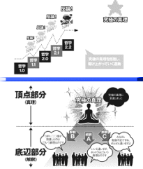 前書きには、以下のようなことがかいてある。 哲学とは「世界に存在する価値観を新たに発見すること」と定義し、 *西洋哲学は「常識を疑い、議論を積み重ねて真理に辿り着こうとする」、即ち真理追及のための知識体系(言葉と論理で理解する)である。本質的に人間は無知であり、無知を自覚することで、真理到達への究明を志し、達成できなくてもその志を後世に託す。 *東洋哲学は「初めに真理ありき」であり、真理を発見する体験(=悟り)の手順書(体を通して体感する)とのこと。先人の東洋哲学を批判や否定をするのではなく、「自分たちの解釈の仕方が間違いだ」と考えて、「新しい解釈の仕方」をつくり出し、その解釈の体系を発展させていく。 |