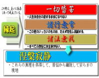 しかし、世界は、本来、すべて関係しあっていて、しかも絶え間なく変化し続けています。その世界のあり方を「縁起(因縁生起)」といいます(諸行無常・諸法無我)。そういう世界を、自と他を区別せずありのままに見るのが「仏の智慧」であり、それを「無分別智」と呼びます。大辞林の「無分別智」の解説には、「対象を客体として認識・分析する分別を超えた絶対的な智。世界の窮極の真理を把握する智慧。」と記載されています。 |
