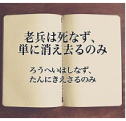 そして最後に、かの有名な一文で締めくくっています。 『私は今、52年にわたる軍務を終えようとしています。今世紀に入る前に私が陸軍に入隊した時、それは私の少年時代の希望と夢が成就した瞬間でした。私がウェストポイント(陸軍士官学校)で兵士になる宣誓をして以来、世界は何度も向きを変え、希望や夢はずっと前に消え失せてしまいました。しかし、当時兵営で最も人気が高かったバラードの一節を今でも覚えています。 |
