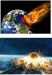 ★小惑星の衝突 より現実的な危険は「小惑星の衝突」だ。 地球と火星の間には小惑星がたくさんあり(イトカワ、リュウグウなど)、火星と木星の間には大規模な小惑星帯がある。 その中には地球と衝突すると危険な小惑星が数千個ある。 2013年、チェリャビンスク隕石の大きさは10mで数千の建物が被害を受け、数千人の負傷者が出た。 1908年、ツングースカ隕石の大きさは100mで、広大な森林が壊滅した。都市部なら大都市が壊滅しただろう。 6500万年前、ユカタン半島の巨大隕石(大きさ10km)は恐竜など地上の生物の殆どを絶滅させた。 |