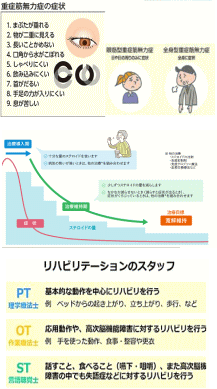 ⑤ 難病発症 :県支援センターPM、九州新連携PM、その他の診断士活動に加えて、地域診断士研究会の立上げ、共育塾の立上げなど、多岐にわたって休日なしの活動を繰り返している仕事環境の中で、新連携認定支援を同時期に3案件認定にかける(普通は1案件)など更なる無理を承知でやっていたところ、運転中に左瞼がペタッと落ちてくる異常症状が出始めました。(62歳)しばらく原因不明の状態が続きましたが、ついに「眼筋型筋無力症」と判明しました。時間が経つにつれて、異常状態が「片目から両目に」だけに止まらず、2009年末には「飲み込めない」「喋れない」など「全身型筋無力症」に悪化していきました。 症状が急激に進行したために、1月の共育塾3期生修了式が終るのを待って、急遽入院・手術(64歳)することになりました。高年齢者の手術後の回復実績は「社会復帰2割、社会復帰不可6割、短期間で死亡2割」とのことで、遺言書を事前準備して入院。手術後にパルス療法(ステロイドの大量投与療法)を受けながら身体リハビリ(PT/OT/CT)も始めて、それからは順調に回復して半年後には退院しました。 |