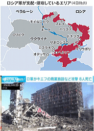 2022年2月24日に始まったロシアによるウクライナ侵略戦争の推移が 連日、海外でも国内でもトップニュースで報じられている。 プーチンの身勝手な人道を無視した冷酷非道さ(強者が弱者に徹底的に恐怖感を植え付けるやり方)、町全体への無差別砲撃によるウクライナ国民の悲惨さなど、連日トップニュースとして目にするたびに、何とももどかしい気持ちになる。心のわだかまりが広がっていき、現実のこととして受け止めることが難しく欝々とした気持ちが溜まっていく感じである。 ソ連崩壊後の歴史や周辺状況を深く知ることによって、「事実」と「立場による見方」が違ってくることも強く感じている。プーチン論理についても「欧米に騙された怨念」のようなものが背景にあることも理解できたが、ウクライナという独立国家に侵略していることは、論外の暴挙であることは当たり前である。 |