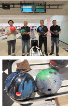 4月後半に電気通信大学の竹内先生が来熊されたので、企業訪問や共育塾15期生との会食懇談と合わせて、プロ級のボウラーであるINPITの吉本さん、フィールドワークスの古家社長と合わせて4人で投げる機会を4月29日にセットしました。プレイ後4人での会食の際に、「もっとスコアアップするには、プラスチック・ボールでは難しい。思い切って、ちゃんとしたボールを買ってみたら?」と勧められて、早速ニューボール購入することにしました。翌日に穴開けと微調整をしてもらい、初投げをしました。ボールの曲がりが半端でなく戸惑いましたが、今リーグ戦でニューボールに慣れてステップアップを目指すことに決め、その2日後からのリーグ戦に再参戦しました。 | ![]() |