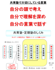 *Bing 「共育塾」は、熊本県の中小企業診断士事務所のナスドリームズが運営する、若手経営者育成塾です。2005年に経営者の相互研鑽の場として横山耕二先生(中小企業診断士)が始められ、2014年の7期生からは創始者横山耕二先生の志を継いで塾頭となりました。 「共育塾」では、経営者として必要な知識やスキルを学び、自社の経営に活かすことができます。また、同じような立場にある仲間との交流もできるため、新しいアイデアやビジネスチャンスを得ることができるかもしれません。 |