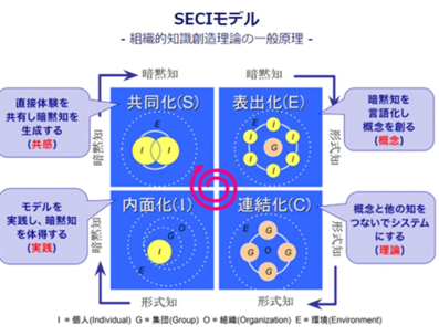 SECIモデルは共感から始まり、対話や共体験を通じて本質を突き詰めるやり方である。個人が持つ知識や経験(暗黙知)を組織全体で共有(形式知化)し、ユニークな集合知を創造し、またその組織知の実践を通じて個人の暗黙知を豊かにしていく循環型のフレームワークである。