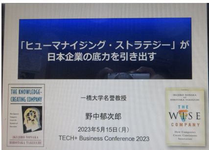 今年5月に『TECH+ Business Conference 2023 ミライへ紡ぐ変革』があり、基調講演を一橋大学名誉教授の野中郁次郎氏が行った。(野中氏はナレッジマネジメント:SECIモデルで世界的に有名な経営学者)テーマは『「ヒューマナイジング・ストラテジー」日本企業の底力を引き出す』、そして6月に『持続的価値創造を実現する企業変革「次の一手」』の基調講演で『ヒューマナイジング・ストラテジー 経営に「野性」を取り戻せ』と続けて話をされた。