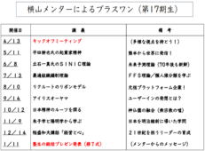 メッセンジャーで共育塾ネットワークGをつくり、参加率の低い時代を経て、いろいろ試行錯誤しながらG参加推進を図り、今は77名参加する場になり定着してきましたが、活用がなかなか広がっていかない実情にあります。入塾中の17期生・森田君が開発し商品化しつつあるコミュニケーションツール「みんホム」を、18期生から新規導入する予定ですが、平井副塾頭と森田君がコラボして、将来に向けて徐々に機能化していくことに期待しています。 |