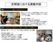 【共育塾ネットワークの活性化】 私がイメージしている“相互連携・相互扶助”機能化のレベルには程遠い状況で、「共育塾思想を共有する“やる気集団”」が機能していないことが残念です。 1期生の時から共育塾ネットワークを意識して、期生間のネットワークづくりを心掛けたものの、5期生の頃から「期生間の交流」の難しさを実感し始めました。メーリングリスト以外に、フロンティアビジョン渡邉社長に、安値で共育ネットワークHPをつくってもらったこともあります。 |