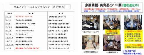 【プラスワンの“反転授業方式化”】 この中の「プラスワン」については、平井副塾頭の発案で17期生プラスワンをZoom録画して、18期生でテスト導入をしてから19期生から自律人材育成にフィットした“反転教育形式”を本格導入する予定です。 そのことによって、プラスワンを“時代の変化に対応できるカリキュラム構成”が可能となります。生成AIの急進化による激変時代が始まっている今、平井塾頭(現副塾頭)の感性に基づき、プラスワン・カリキュラムを時代に合わせて変化させていくことが可能になります。 |