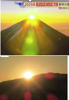 新年明けましておめでとうございます。 テレビを付けると、ちょうど富士山の頂上と日の出が重なった“ダイヤモンド富士(6:53)”を見ることができました。そのあとお屠蘇を済ませて、孫たちからの「もうすぐ立田山から日の出が始まるよ!」という声で、屋上に上がって“立田山からの日の出(7:44)”も見ることができました。 新年の朝日はエネルギーに満ち溢れており、心新たに清々しい気持ちになりました。 |