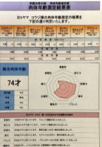 ほかに、“歩行姿勢年齢測定機”もやってみました。カメラに向かって歩いていくことで、「歩く速さ、ふらつき、左右差、身体の軸、腕振り、足の運び」を5段階評価すること、「歩行姿勢の前方・側方・後方アニメーション」と合わせて“詳細評価”がプリントアウトされます。詳細評価には“速度年齢(歩く速さ)”“バランス年齢(揺れ、左右差)”“姿勢年齢(身体の軸、腕振り、足の運び)”があり、アニメ動画の解説と総合分析を介護士がしてくれました。 “速度年齢(歩く速さ)”だけが実年齢を3歳オーバーしておりショック。歩幅が小さくなっているとの指摘があり、それ以降散歩の時には歩幅を広げて、腿とつま先を上げて歩くように心掛けます。 バランス年齢(揺れ、左右差)や姿勢年齢(身体の軸、腕振り、足の運び)は実年齢よりもだいぶ若かったのですが、頭や肩の横揺れなど総合しての話は、私たち素人には判断できない内容もわかるようです。私が左膝を痛めていること、右足股関節が痛いことも、介護士からチャンと指摘されてビックリしました。 おかげで、今からの健康維持・管理について、たくさん学ぶことができました。 |
