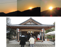 | 新年明けましておめでとうございます。 肌に凍みる寒さの中で、自宅の屋上から立田山“初日の出”のプロセス(日の出直前➩日の出➩日の出済み)を、30分ほど寒さを我慢して写真撮影しました。そして“初日の出”に手を合わせ参拝しました。そして近所の高平神社に家族全員の健康な一年を願って初詣。 |