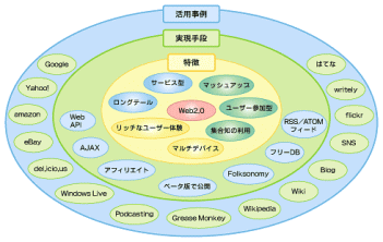 2004年にティム・オライリーらにより提唱された“Web2.0”という言葉、コンセプトは2005年 半ばから日本国内のニュースサイト、ブログ、雑誌でも数多く取り上げられるようになり、 世の中での認知度は上がってきている。 |
