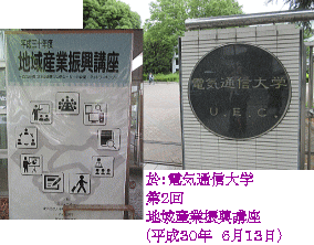 平成30年6月13日に、東京都調布市にある電気通信大学80周年記念館で開催されている地域産業振興講座(12回シリーズ)で第2回の講義を行うご縁をいただいた。 昨秋に武蔵野大学の竹内客員教授(以後は親近感を込めて、いつも呼んでいる「竹内さん」と記載)から電通大で十数年前から開催されている地域産業振興講座での講義の打診があり、喜んでお受けすることとした。 東京での私の講義は、平成13年10月に東工大の百年記念館でのサイエンスパーク研究会での講義「プロジェクトマネージャーの活動」以来のことであり、多分、今回が最後の東京での講義になると思っており、非常にありがたいことだと心より感謝している。 |