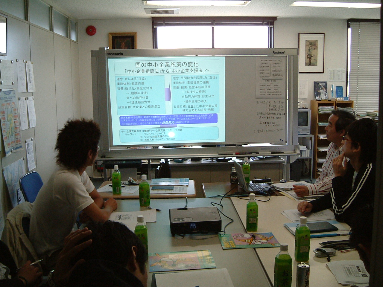 <2年目の新たな活動> 私がみんなに最も伝えたいこととしてあったのが、「人は皆、無限の可能性を持っていること」「チャレンジすることで、自分の可能性を広げることができること」「チャレンジほど面白いことはないこと」、そして「楽をして、地力をつけることはあり得ないこと」であり、1年目には私の実体験を含めた具体事例を話すことで、メンバーに繰り返し伝えてきた。 2年目(平成19年)は、各自が持ちまわりで、起業・企業支援事例や得意分野に関する発表を行うこととして進めていったが、初年度に比べ刺激も薄らいできたこともあり、出席率は必ずしもいい状況ではなかった。別の言葉でいうと、「相互研鑽の場」が確立できていない状況にあったともいえる。自ら発信する集団になっていかないことへの焦りもあり、私の渾身のエネルギーがザルから漏れていくような、空しい気持ちになったこともあった。当時の私が、今年度目標で設定したコンセプトには、自戒の意味をこめて「待つ度量と、捨てる勇気を培うとき!」と書いている。 |