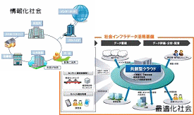 特に20世紀は、機械化社会、自動化社会、情報化社会と、3つの プロセスが 急速に移行する100年であった。そして、工業社会の最終 段階である情報化社会の後には、2005年からの「最適化社会」、その あと2025年からの「自律社会」へ移行すると予測されている。現在の 日本は、情報化社会を経て、その次の「最適化社会」に入りかかって いると言える。 |