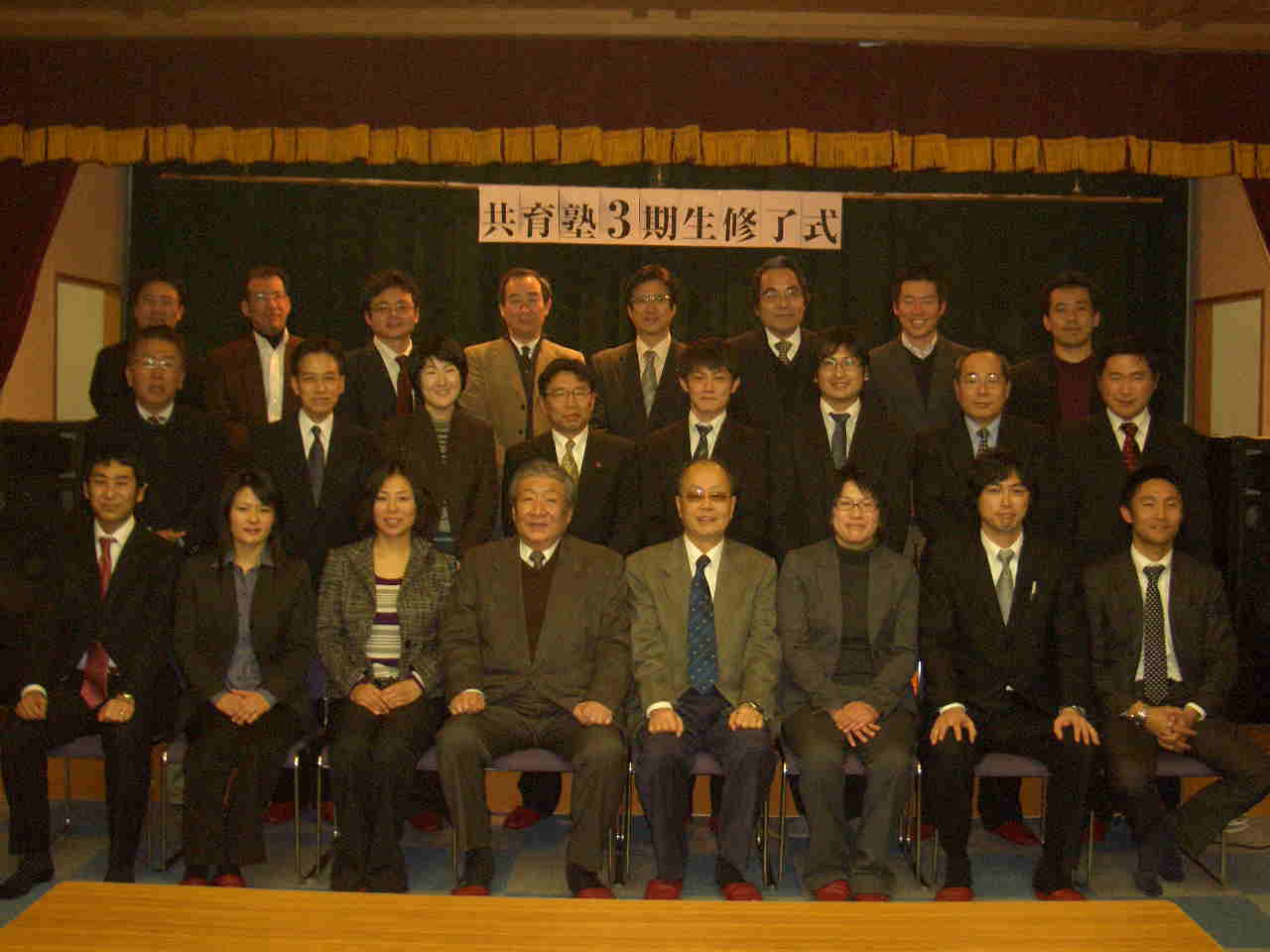 私はこの共育塾での活動は何より楽しかった、面白かったと感じましたし、三期生としては自主活動に入りますが、合わせて、これから先の共育ネットワークとしての活動を非常に楽しみにしております。これから先、みんなのために、社会のために、そしてまた自分のためにもアグレッシブにやっていきたいと思っております。 |