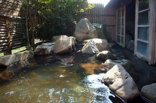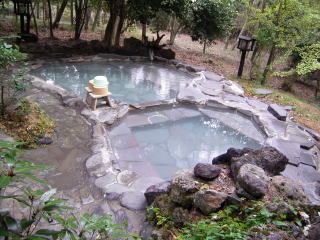@旅行人山荘・・・牧園町高千穂 単純硫黄泉 内湯1、露天1、宿泊者無料貸切露天3 今回は宿泊で入浴しました。この温泉は、貸切がとてもすばらしいです。日帰りでの貸切は有料なのですが、宿泊すると無料で貸切ができます。ふつうの貸切と思ったら大間違い。旅館正面の林の中へ進んで行くと、離れ離れに3つの貸切湯があります。硫黄臭がする白濁のお湯は、昼なら森林浴気分で、夜は満点の星に照らされて癒されること間違いなしです。一番人気の「赤松の湯」は原田知世さんのブレンディのCMにも使われたそうです。 湯の花もたっぷりで、霧島温泉群からは少し奥に入った分、本当にのんびりできます。 この貸切露天は個人的にはベスト10に入ります! |