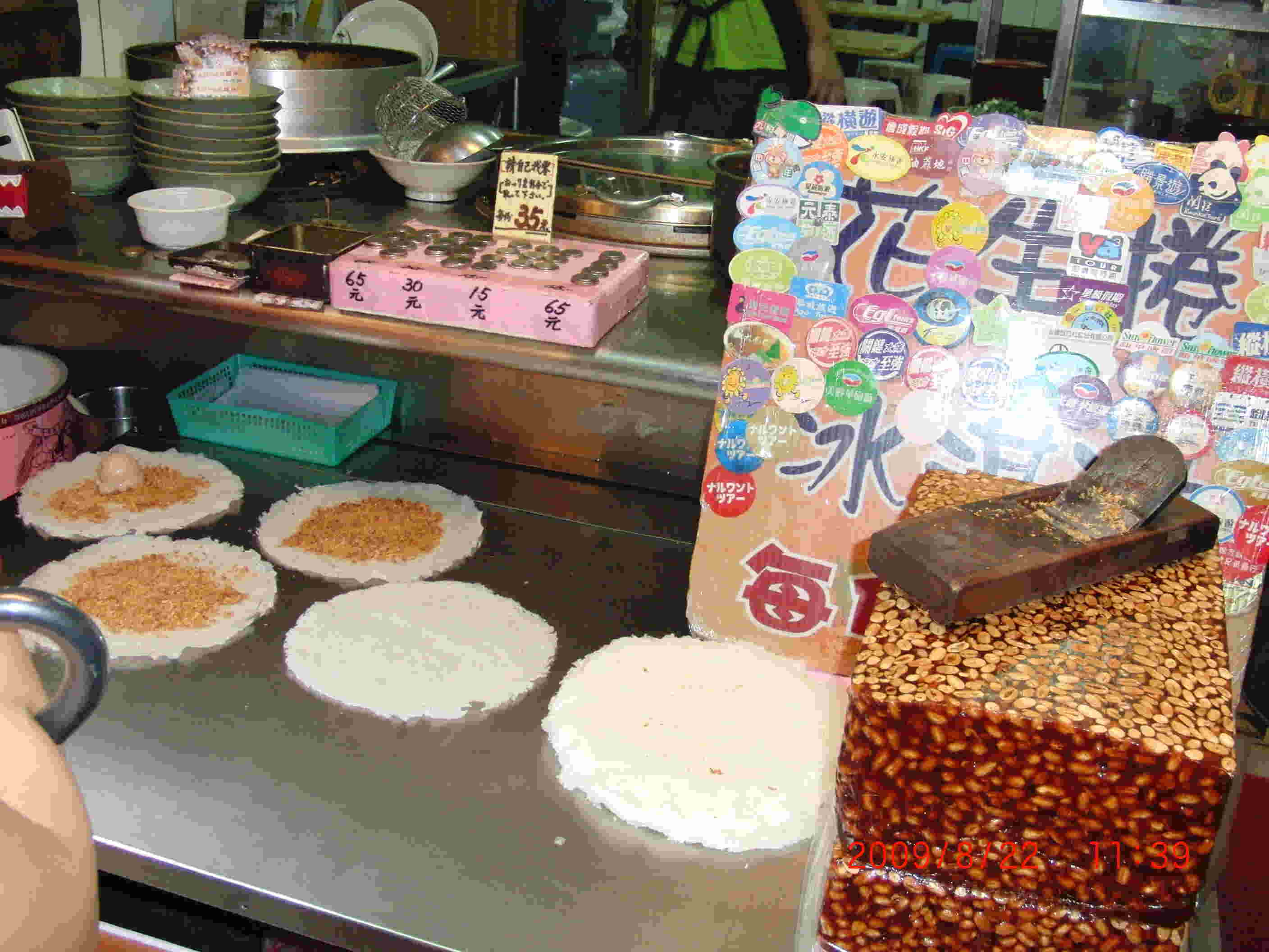 ←花生捲 ピーナッツとアイスを包んでクレープで巻いたもの♪ 伝統的なお菓子にちょっとアレンジしたものなどたくさんのお菓子があります。 |