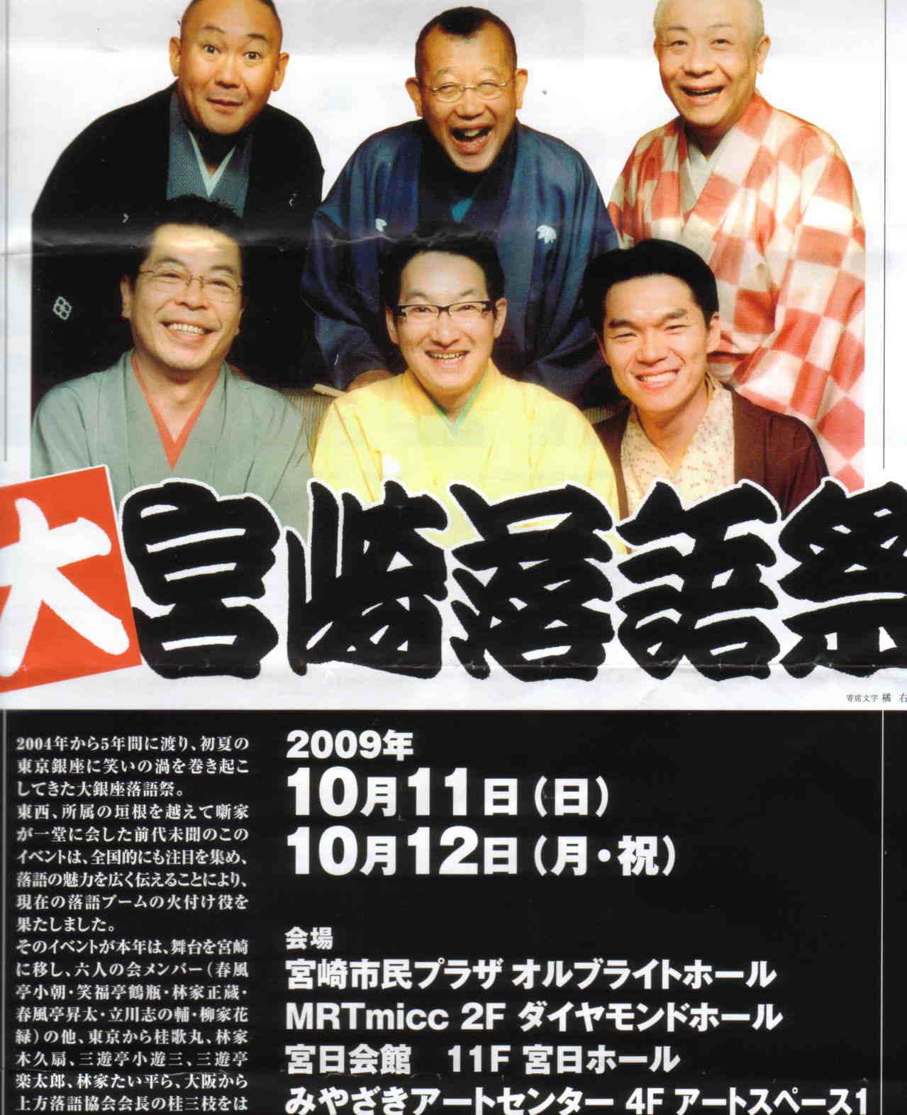 夜は落語談義を少々して、宮崎名物地鶏の炭焼きをおいしくいただきました♪ 楽しかったぁ(^^) 今月末は博多天神で「博多天神落語まつり2009」が開催されます。宮崎では観られなかった噺家さんもやってきますよ! |