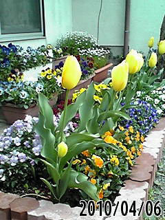 赤の終わりを見届けたかのように黄色の成長がグングン進み出し、4月に入ってようやく咲きはじめました。 赤と黄色の同時咲きは実現しなかったけど、おかげでしばらくの間、我が家の花壇も賑やかです。 あと僅かで春の花ともお別れ。。次は夏に向けてどの花を植えようか思案中です。 |