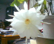 10月14日の夜、馨しい花「月下美人」が見事に咲きました。 一夜限りの花で10時頃満開になったので何時萎むのかと、頑張って起きていたのですが 眠さに負けてしまい見届けることができず、朝起きたときはショボンとなってたので、こちらもしょぼん。(:‐;) おそらく2時〜6時の間に萎んだのでしょう。 秋咲きの月下美人は温度が低いと翌朝まで咲いているのもあるそうです。 ![]() |