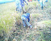 次は稲刈り。鍬を持ってお手本を示してくれたんですが、「サッ」とは |