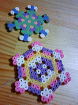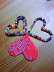 Bビーズを置いたら、専用のアイロンシートを上に乗せ、アイロンをあてます。 アイロンの熱でビーズとビーズが溶けてくっつき一つの形が出来上がります。 色も形も自由です。子供が集まったときも男の子も女の子も夢中になって作っていました。 |