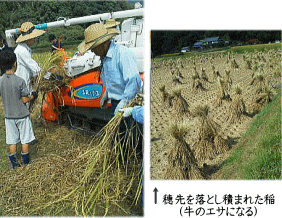 前日の雨で決行があやぶまれた稲刈りも当日は、かんかん でりで絶好の稲刈り日和。 6月に田植えした田んぼの予定でしたが、残念にも「うんか」 という小さな虫にやられてみんなみごとに倒れてしまったので 今回は別たんぼの稲刈りをしました。 農薬を使用しないので色々なことが発生し合鴨農法もなかなか 難しいようです。専門のかたに教えていただき調子よく刈り 進みました。 ![]() |